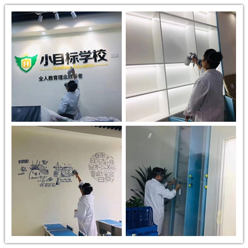 案例背景:小目标学校位于四川成都市金牛区,教育机构装修完毕之后,于是就马上邀请我们四川空气魔方去做室内空气治理,其中包含,桌子、柜子、凳子、地面、墙面等需要进行治理。希望通过我们的专业治理之后能够给大家一个健康的室内环境!