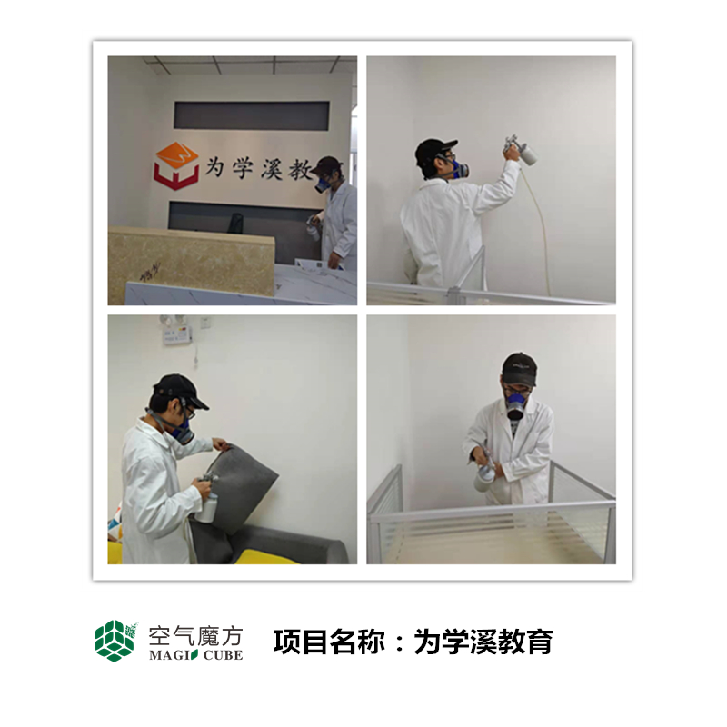 案例背景:为学溪教育位于四川省成都市青羊区,教育机构装修完毕之后,于是就马上邀请我们四川空气魔方去做室内空气治理,其中包含,桌子、柜子、凳子、地面、墙面等需要进行治理。希望通过我们的专业治理之后能够给大家一个健康的室内环境!